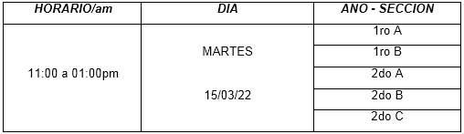 NOTA:¡ Asistir con el uniforme reglamentario ( pantalón y camisa )!. Respetar los horarios que les corresponde.