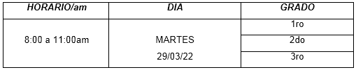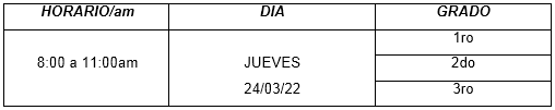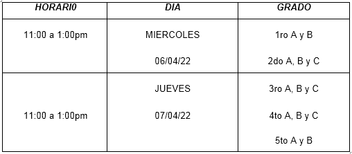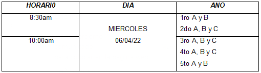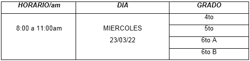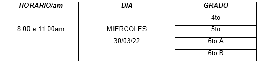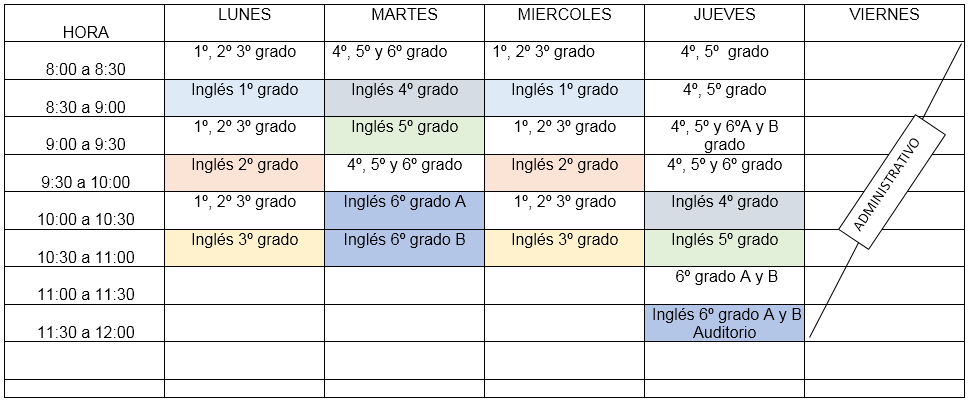 hasta las 11:00 am. Excepto el día jueves donde el segundo grupo de 6º A y B entraran a las
