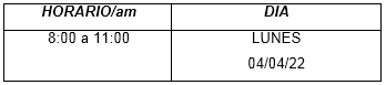 Nota: UNICA ENTREGA, NO HABRA PRORROGA.