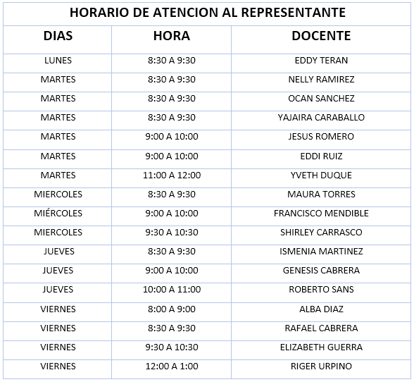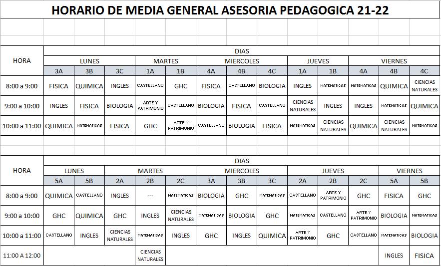 HORARIO DE ASESORÍA PEDAGÓGICA MEDIA GENERAL