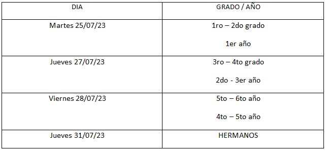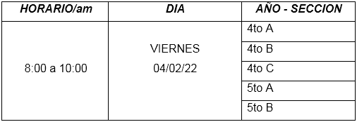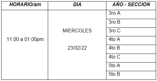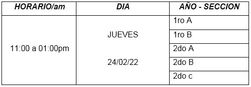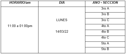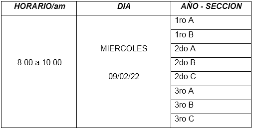 NOTA:¡ Asistir con el uniforme reglamentario ( pantalón y camisa )!. Respetar los horarios que les corresponde.