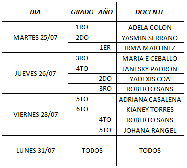 Se informa a los Padres y representantes , que motivado a los arreglos y reparaciones que se están realizando en el Colegio, las clases se iniciarán a partir del lunes 29 de septiembre, tomando en cuenta el siguiente cronograma: