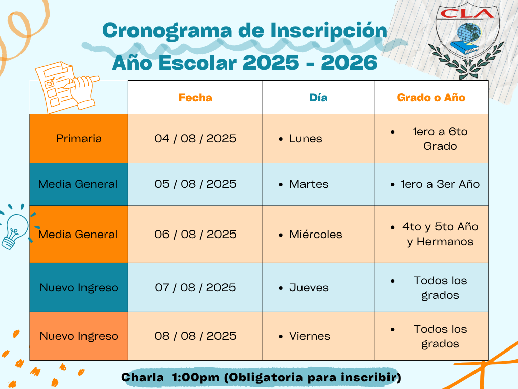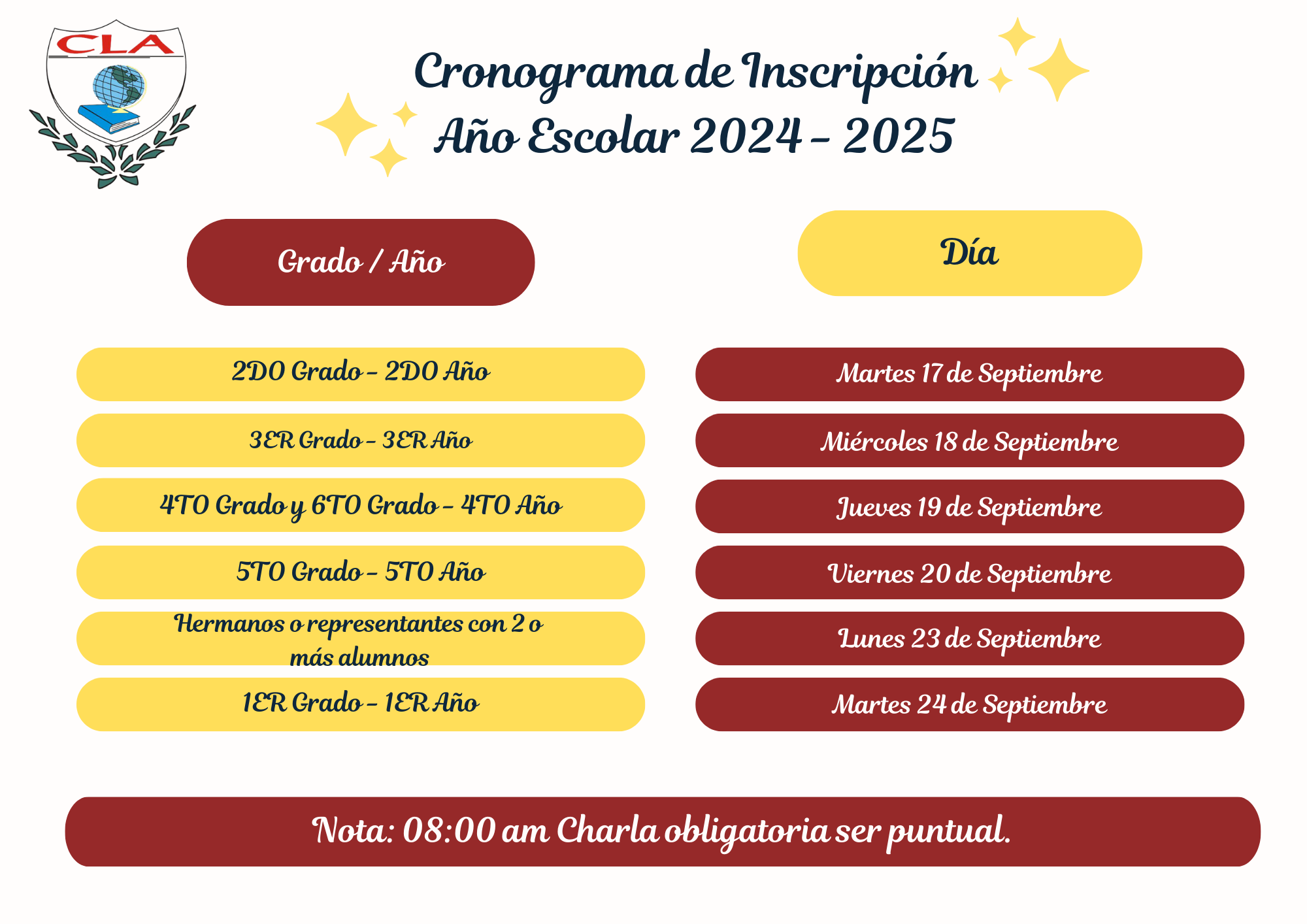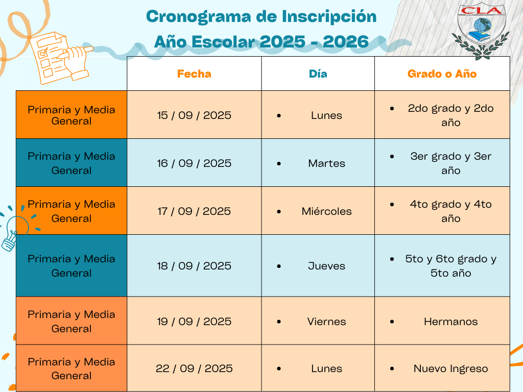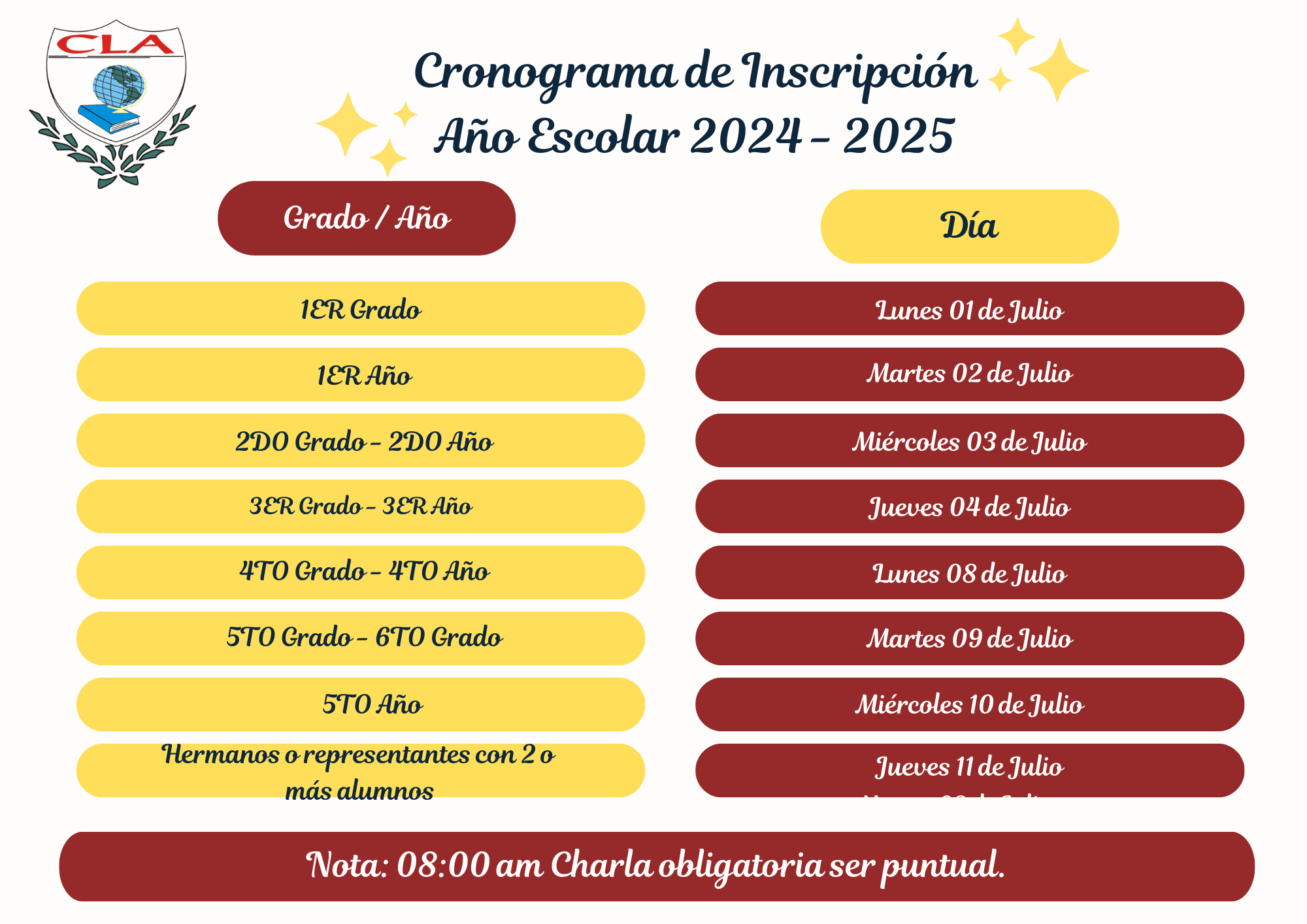 CRONOGRAMA DE INSCRIPCIÓN AÑO ESCOLAR 2025 - 2026