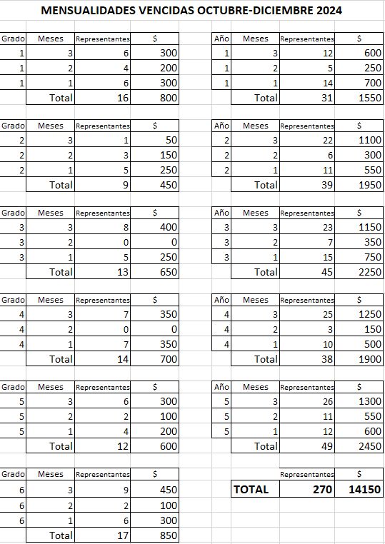 Deben estar solventes con el año escolar 2024 – 2025 (de octubre a mayo #50 cada mes y de junio a agosto #65 cada mes)