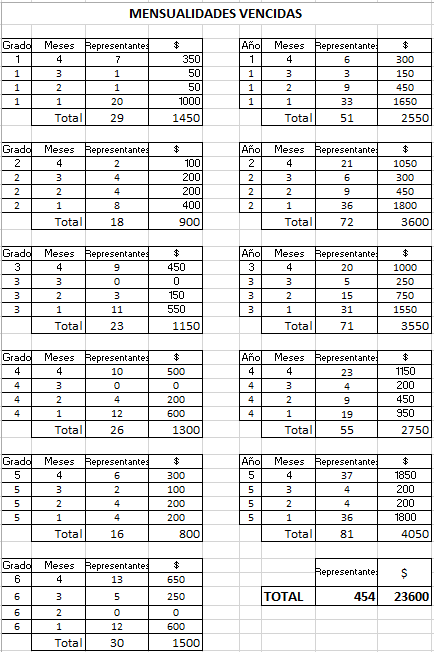 A continuación se anexan las estructuras de costo para el próximo año escolar: