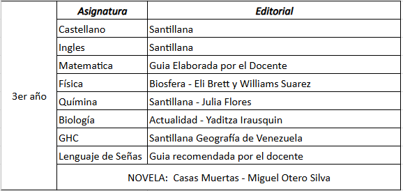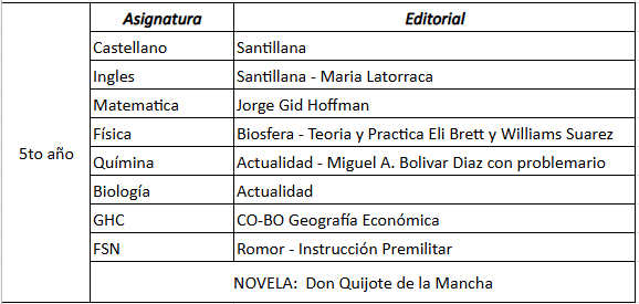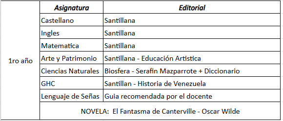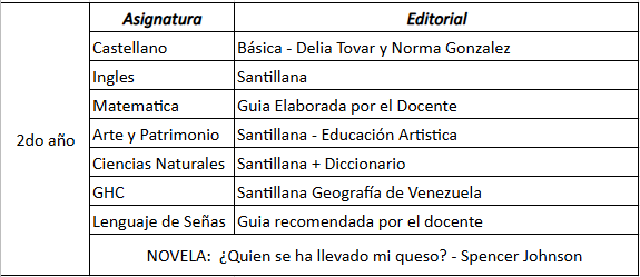 Nota: Se requiere un cuaderno por cada asignatura, lapices, bolígrafos negros, creyones, sacapunta, borrador y diccionario.